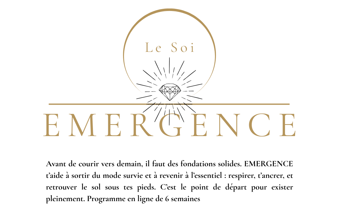 EMERGENCE, c’est ce retour au socle. Ce moment où tu poses les bases solides de ton être. Sortir du mode survie, apprendre à respirer à nouveau, redécouvrir qui tu es en dehors des attentes, des rôles et des obligations.